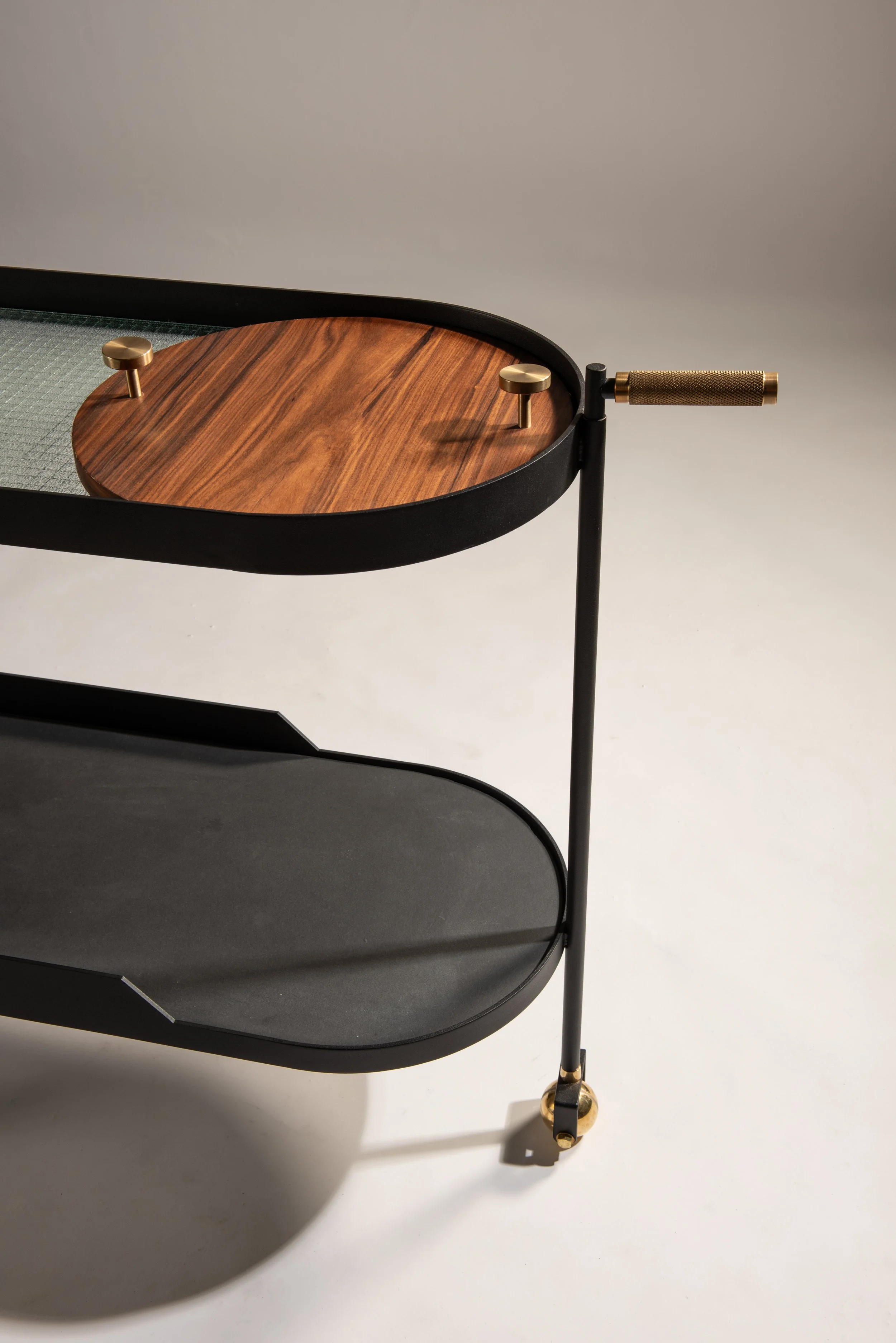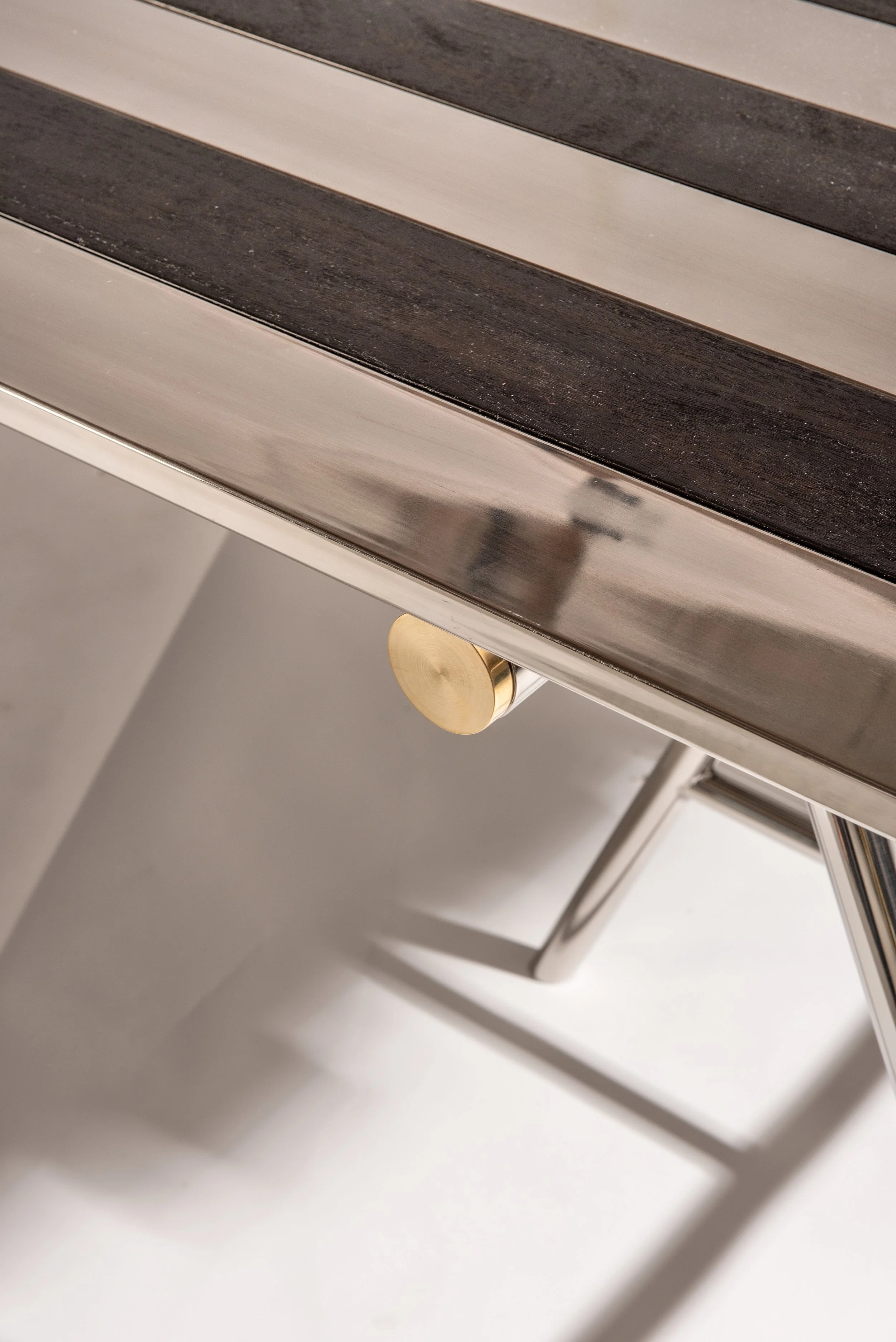 Usamos materiais como madeira maciça, pedras brasileiras, ferro, aço inox, latão, alumínio, tecidos e couros. Cada peça é projetada para durar e transmitir presença estética e estrutural.
